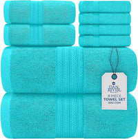 DAN RIVER 8 PC Luxury Bath Towels for Bathroom, 2 Bath, 2 Hand, and 4 Wash Cloths, 600 GSM 100% Ring Spun Cotton Towel Set, Highly Absorbent, Gym, Hotel, and Spa, Aqua