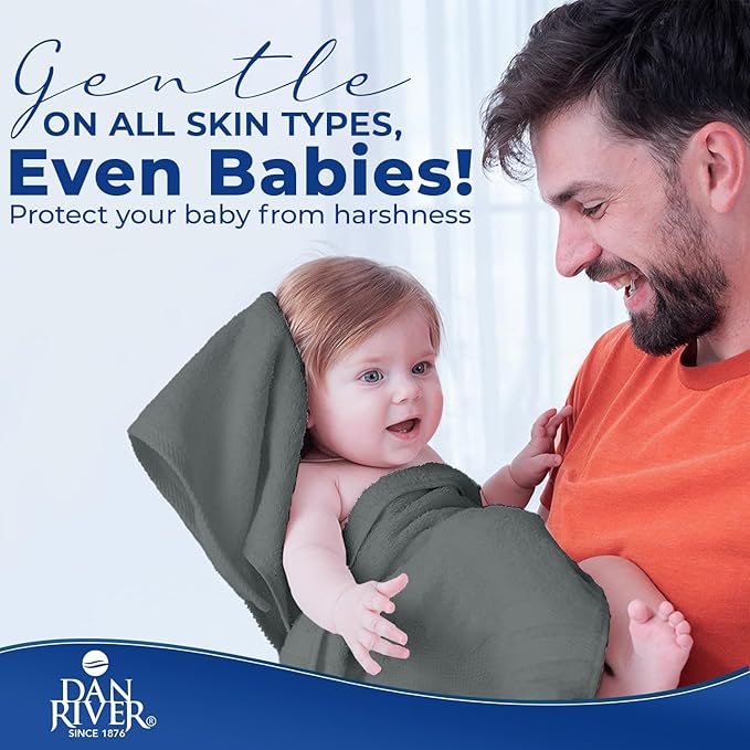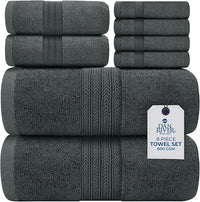 DAN RIVER 8 PC Luxury Bath Towels for Bathroom, 2 Bath, 2 Hand, and 4 Wash Cloths, 600 GSM 100% Ring Spun Cotton Towel Set, Highly Absorbent, Gym, Hotel, and Spa, Grey