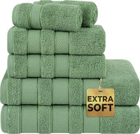 American Soft Linen Salem Turkish Bath Towel Set, 100% Cotton 600 GSM 6 Piece Towels for Bathroom, 2 Bath Towels 2 Hand Towels 2 Washcloths, Sage Green