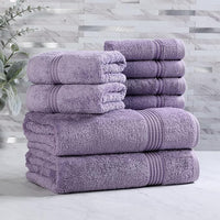 Superior Egyptian Cotton 8-Piece Towel Set, Assorted Towels for Home Bathroom, Guest Bath Decor Essentials, Includes 2 Bath, 4 Hand, 2 Face Towels/Washcloths, Quick Dry, Absorbent, Royal Purple