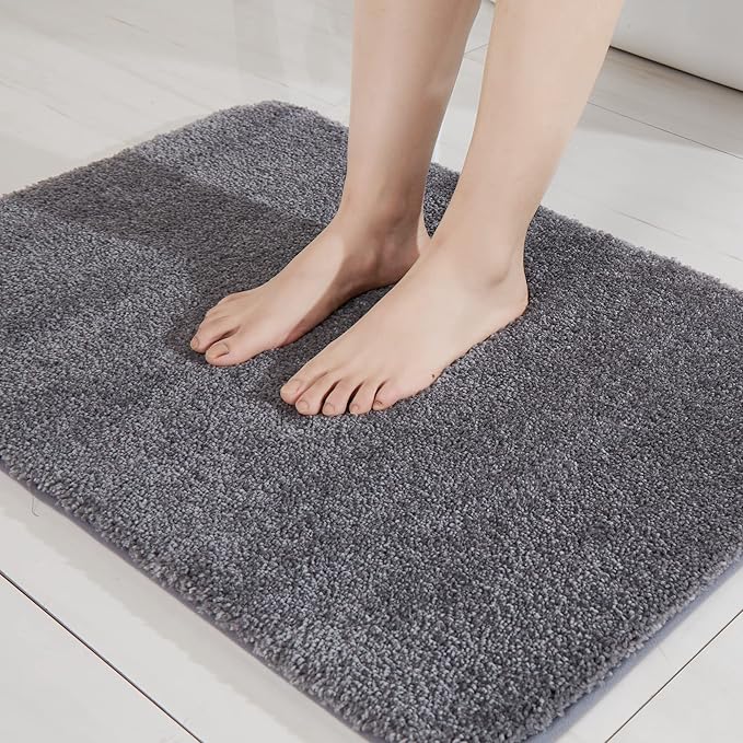 COSY HOMEER Extra Thick Bath Rugs for Bathroom - Anti-Slip Bath Mats Soft Plush Yarn Shaggy 100% Strong Mirco Polyeste Mat Living Room Bedroom Mat Floor Water Absorbent(Dark Grey,16x24 - Inches)