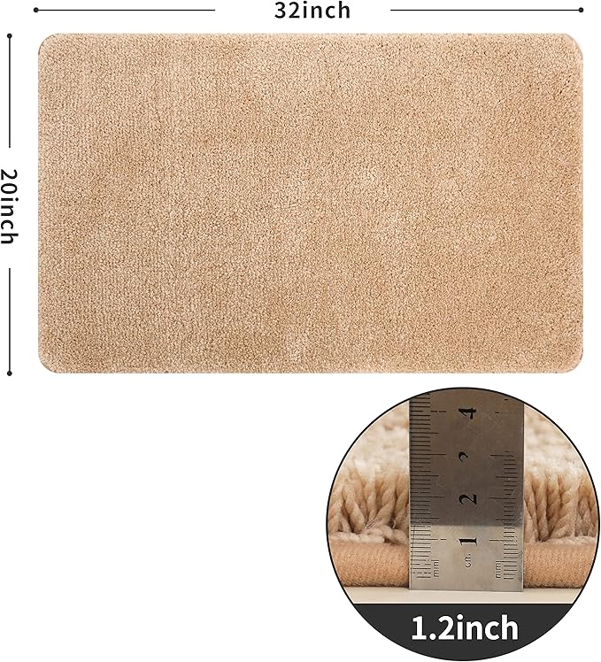 COSY HOMEER Bath Rugs for Bathroom Extra Thick - Anti-Slip Bath Mats Soft Plush Yarn Shaggy 100% Strong Mirco Polyeste Mat Living Room Bedroom Mat Floor Water Absorbent(Beige,20x32 - Inches)