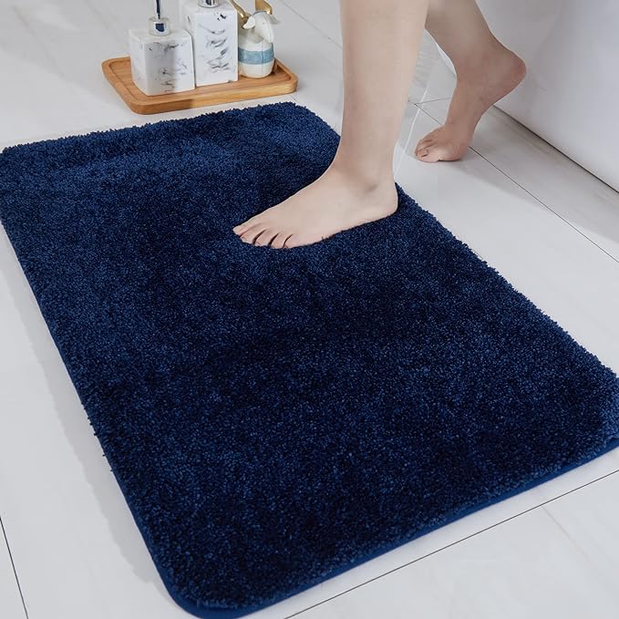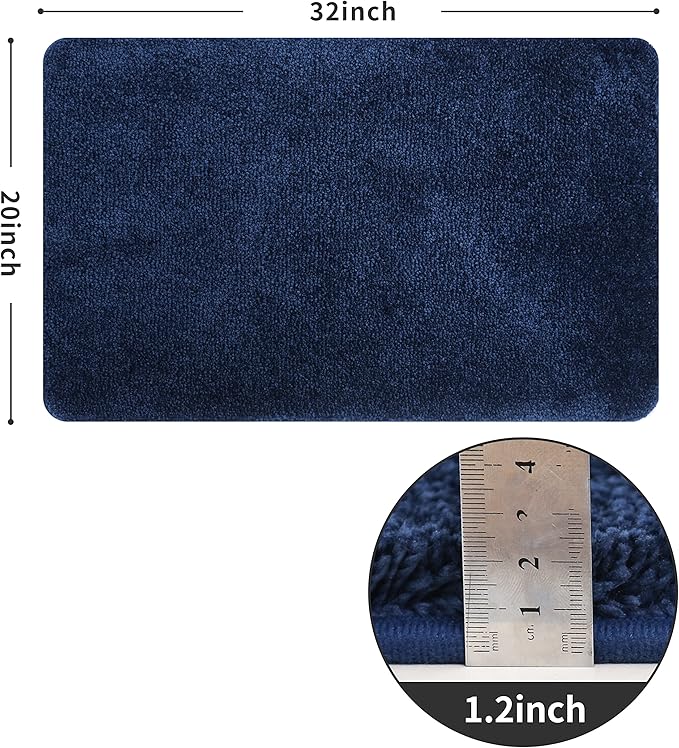 COSY HOMEER Bath Rugs for Bathroom Extra Thick- Anti-Slip Bath Mats Soft Plush Yarn Shaggy 100% Strong Mirco Polyeste Mat Living Room Bedroom Mat Floor Water Absorbent(Navy,20x32 - Inches)