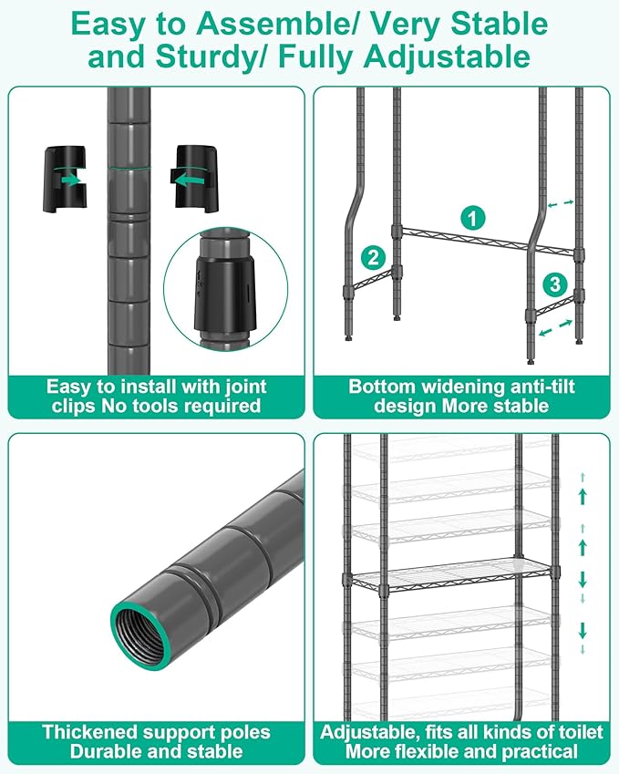 Over The Toilet Storage, 4-Tier Over Toilet Shelf Organizer Metal Storage Rack Freestanding Bathroom Space Saver with Adjustable Shelves and Baskets, Gray Sale