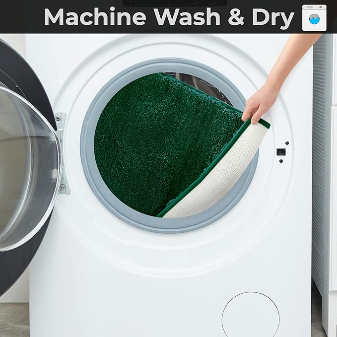 Bathroom Rug Set 2Piece, Thick &Soft Microfiber Shaggy, U Shaped Contour, Machine Washable Bath Mats, Absorbent Bath Rugs, Non-Slip Rubber Backing Bath Mat for Bathroom Floor, Tub and Shower,Green