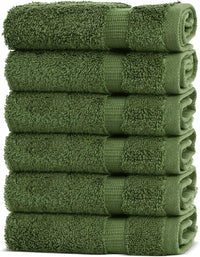 Chakir Turkish Linens 100% Cotton Premium Turkish Towels for Bathroom | 13'' x 13'' (6-Piece Washcloth, Moss)