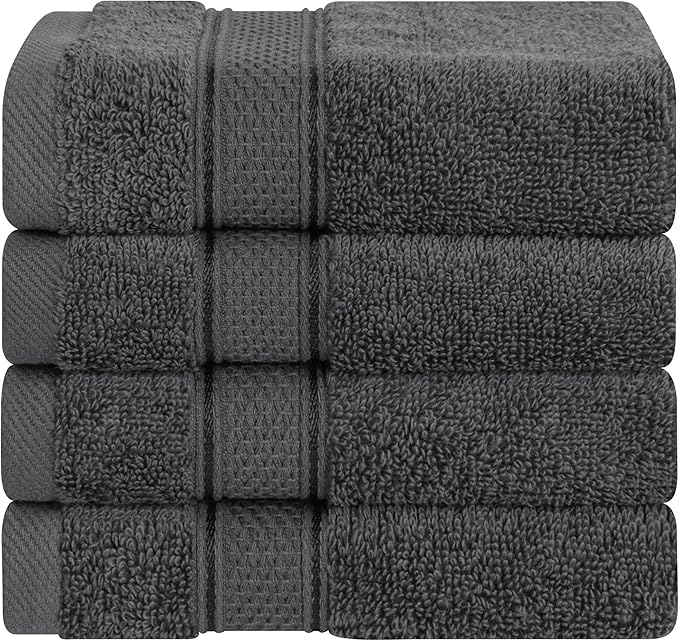 American Soft Linen Salem Washcloth Sets, 4 Piece Luxury 600 GSM 100% Cotton Washcloths for Bathroom, 13x13 inches Washrags Premium Quality Hand Face Towels, Dark Gray