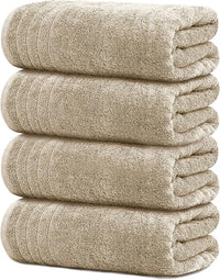 Tens Towels Pack of 4 Extra Large Bath Towels 30 x 60 Inches, 100% Cotton, Larger & Lighter Weight, Quicker to Dry, Super Soft and Absorbent, Perfect for Bathroom, Beige
