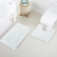 YHF Bathroom Rug Set 2Piece, Thick &Soft Microfiber Shaggy, U Shaped Contour, Machine Washable Bath Mats, Absorbent Bath Rugs, Non-slip Rubber Backing Bath Mat for Bathroom Floor, Tub and Shower,White