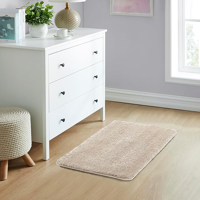 YHF Bathroom Rugs 20" X 32", Extra Thick & Soft Microfiber Shaggy, Machine Washable Bath Mats, Absorbent Bath Rugs, Non-Slip Rubber Backing Bath Mat for Bathroom Floor, Tub and Shower, Beige