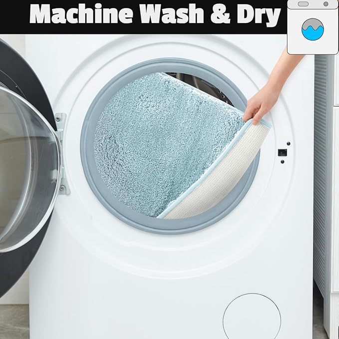 YHF Bathroom Rug Set 2Piece, Thick &Soft Microfiber Shaggy, U Shaped Contour, Machine Washable Bath Mats, Absorbent Bath Rugs, Non-slip Rubber Backing Bath Mat for Bathroom Floor, Tub and Shower, Blue
