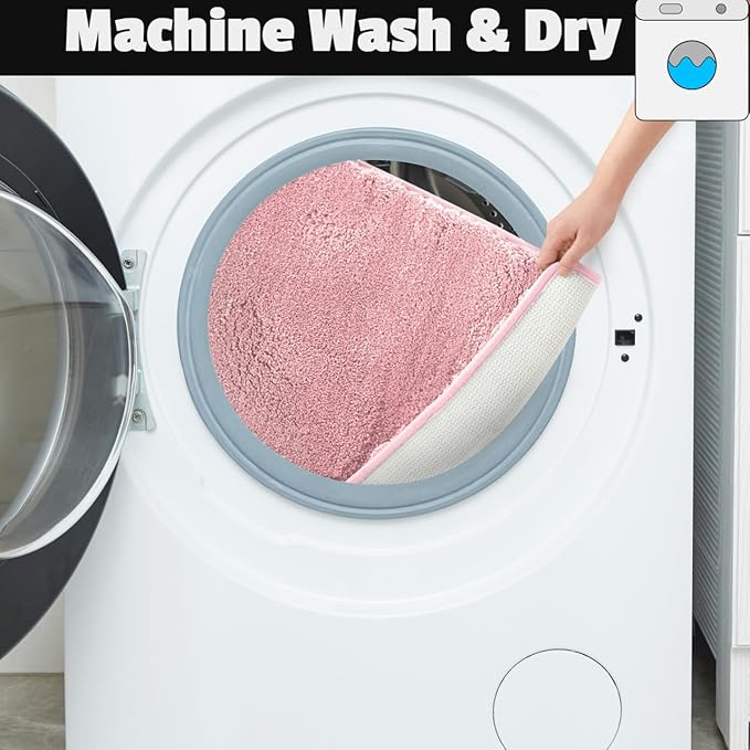YHF Bathroom Rugs 24" X 35", Extra Thick & Soft Microfiber Shaggy, Machine Washable Bath Mats, Absorbent Bath Rugs, Non-Slip Rubber Backing Bath Mat for Bathroom Floor, Tub and Shower, Pink