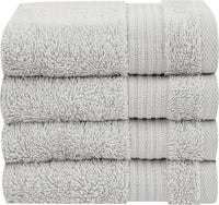 Cotton Paradise 100% Cotton Turkish Washcloth Set for Bathroom, 4 Piece Soft Absorbent Small Hand Face Towels Wash Rags, Silver Grey