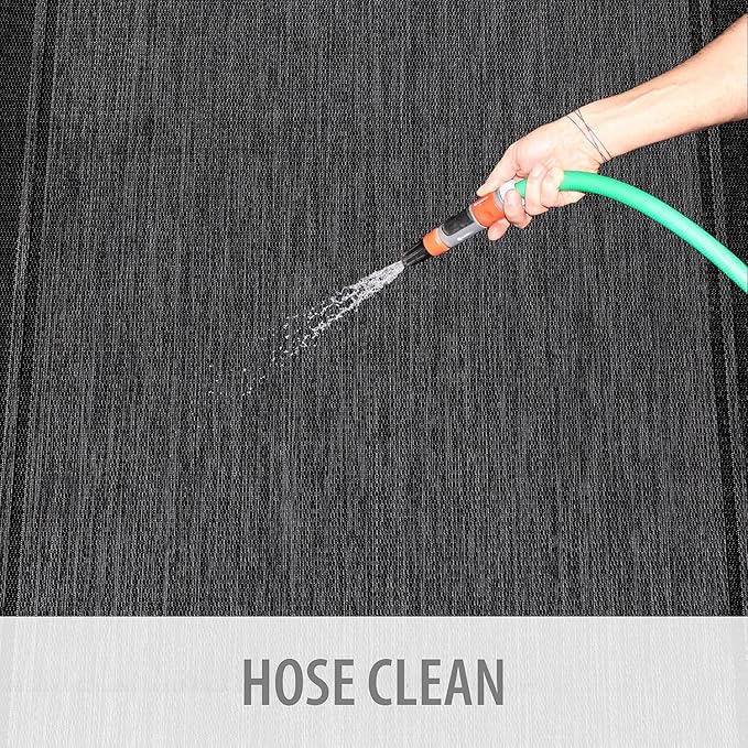 CAMILSON Indoor Outdoor Rug, 6x9 Bordered Dark Grey Black Modern Area Rugs for Indoor and Outdoor Patios, Kitchen and Hallway Mats, Washable Porch Deck Outside Carpet (Bordered Black, 6 x 9)