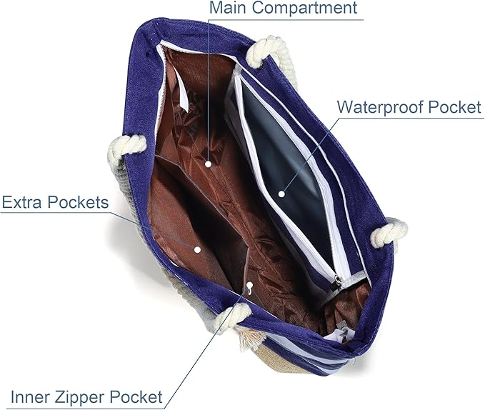 YOOLIFE Initial Canvas Waterproof Beach Tote Bag Zipper Personalized Gifts for Women Her Birthday Travel Beach Essential Sale