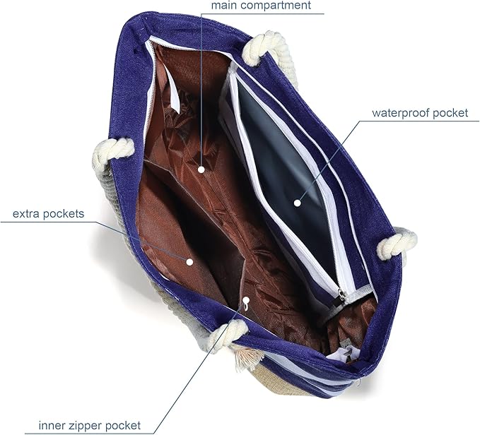 YOOLIFE Initial Canvas Waterproof Beach Tote Bag Zipper Personalized Gifts for Women Her Birthday Travel Beach Essential