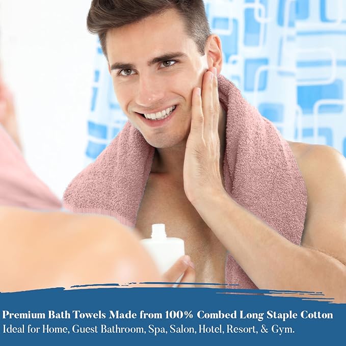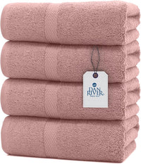 DAN RIVER Bath Towels Set of 4, 27 x 54 Inches, 100% Cotton, Larger & Lighter Weight, Quicker to Dry, Super Soft and Absorbent, Ideal Cotton Towels for Daily Use, Dusty Rose