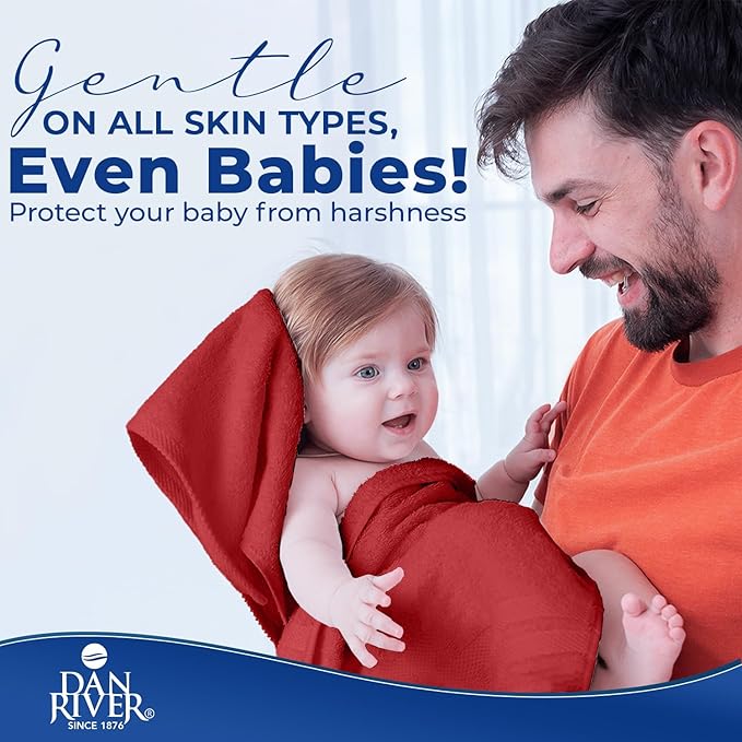 DAN RIVER 8 PC Luxury Bath Towels for Bathroom, 2 Bath, 2 Hand, and 4 Wash Cloths, 600 GSM 100% Ring Spun Cotton Towel Set, Highly Absorbent, Gym, Hotel, and Spa, Red