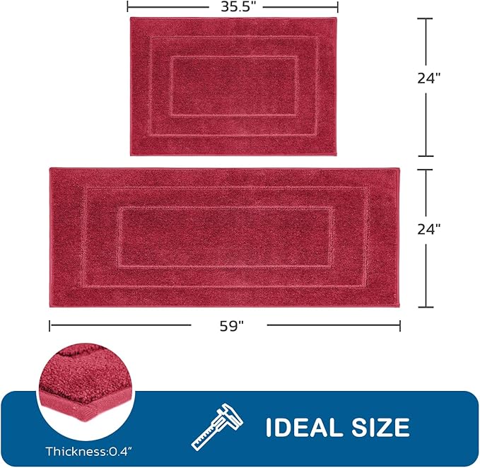 PURRUGS Machine Washable Kitchen Rug Set [2 PCS] (24" x 35.5"+ 24" x 59"), Non-Slip/Skid Kitchen Runner Rugs & Floor Mats, Super Absorbent Soft Standing Mats for Kitchen, Laundry & Sink, Burgundy Red