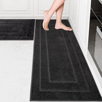 PURRUGS Machine Washable Kitchen Rug Set [2 PCS] (24" x 35.5"+ 24" x 59"), Non-Slip/Skid Kitchen Runner Rugs & Floor Mats, Super Absorbent Soft Standing Mats for Kitchen, Laundry & Sink, Charcoal