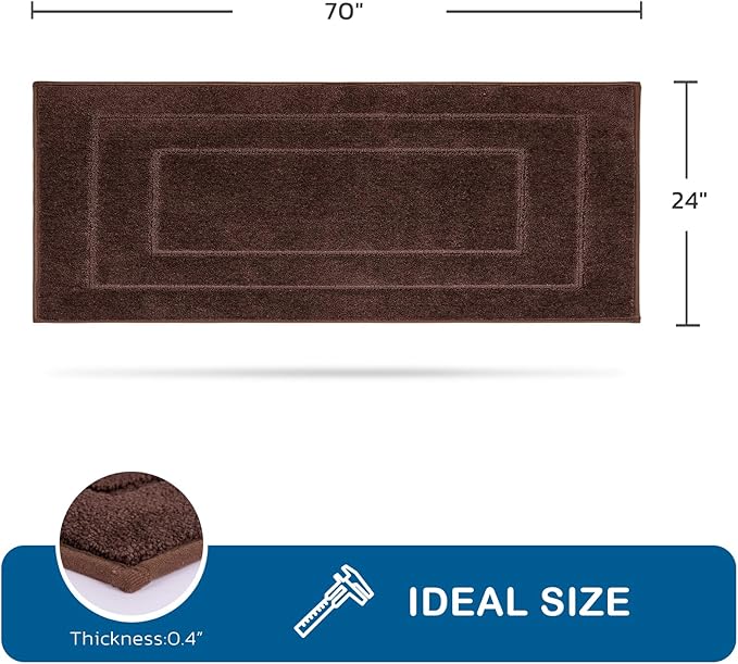 PURRUGS Machine Washable Kitchen Runner Rug 24" x 70", Non-Slip/Skid Hallway Runner Rug, Super Absorbent Soft Area Rug for Kitchen, Hallway & Laundry, Rolled Packaging, Brown
