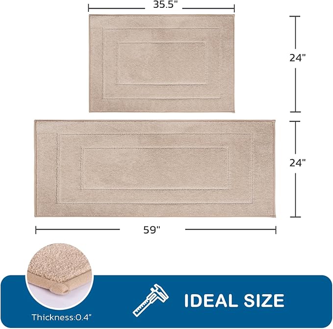 PURRUGS Machine Washable Kitchen Rug Set [2 PCS] (24" x 35.5"+ 24" x 59"), Non-Slip/Skid Kitchen Runner Rugs & Floor Mats, Super Absorbent Soft Standing Mats for Kitchen, Laundry & Sink, Beige