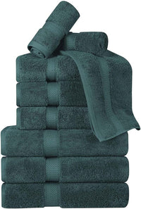 BNM Egyptian Cotton Heavyweight Towels, Ideal For Bathroom, Shower, Spa, Hotel, 800 GSM, Face/ Washcloths, Hand Towels, Bath Towels, Highly-Absorbent, Luxury Home Basics, 9 Piece Towel Set, Teal