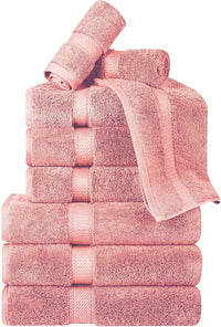 BNM Egyptian Cotton Heavyweight Towels, Ideal For Bathroom, Shower, Spa, Hotel, 800 GSM, Face/ Washcloths, Hand Towels, Bath Towels, Highly-Absorbent, Luxury Basics, 9 Piece Towel Set, Tea Rose Pink