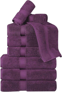BNM Egyptian Cotton Heavyweight Towels, Ideal For Bathroom, Shower, Spa, Hotel, 800 GSM, Face/ Washcloths, Hand Towels, Bath Towels, Highly-Absorbent, Luxury Home Basics, 9 Piece Towel Set, Plum