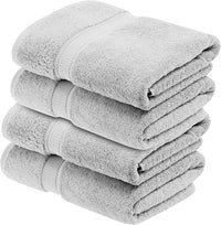 BNM Egyptian Cotton Heavyweight Towels, Ideal For Bathroom, Shower, Spa, 800 GSM Bath Towels, Highly-Absorbent, Luxury Bathroom Essentials, Ultra-Soft Plush Home Basics, Bath Towel Set of 4, Silver