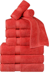 BNM Egyptian Cotton Heavyweight Towels, Ideal For Bathroom, Shower, Spa, Hotel, 800 GSM, Face/ Washcloths, Hand Towels, Bath Towels, Highly-Absorbent, Luxury Home Basics, 9 Piece Towel Set, Coral