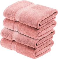 BNM Egyptian Cotton Heavyweight Towels, Ideal For Bathroom, Shower, Spa, 800 GSM Bath Towels, Highly-Absorbent, Luxury Bathroom Essentials, Soft Plush Home Basics, Bath Towel Set of 4, Tea Rose Pink