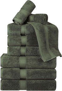 BNM Egyptian Cotton Heavyweight Towels, Ideal For Bathroom, Shower, Spa, Hotel, 800 GSM, Face/ Washcloths, Hand Towels, Bath Towels, Highly-Absorbent, Luxury Basics, 9 Piece Towel Set, Forest Green