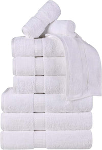 BNM Egyptian Cotton Heavyweight Towels, Ideal For Bathroom, Shower, Spa, Hotel, 800 GSM, Face/ Washcloths, Hand Towels, Bath Towels, Highly-Absorbent, Luxury Home Basics, 9 Piece Towel Set, White