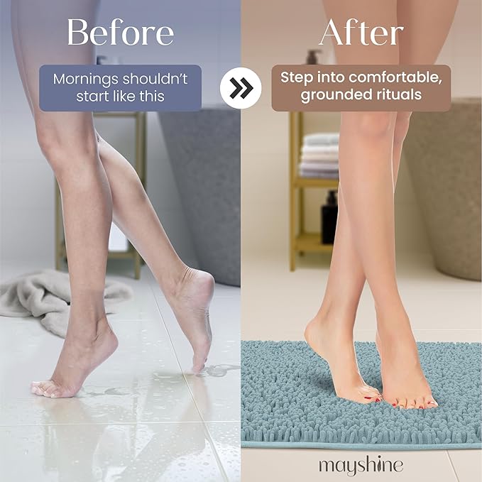 MAYSHINE Plush Shaggy Chenille Bath Mat | Extra Soft, Super Absorbent, Non-Slip Bathroom Rug | Fluffy Microfiber, Area Rug Sets for Bathroom Floor, Kitchen, Living Room | 23"x14" | Spa Blue