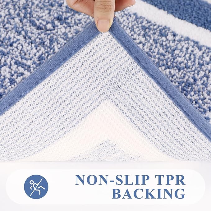 Pauwer Bathroom Rugs Set 5 Piece, Plush Absorbent Microfiber Bath Mats for Bathroom, Non Slip Washable Bath Rug Set with U Shaped Contour Toilet Rugs, Shower Rug and Toilet Lid Cover, Blue