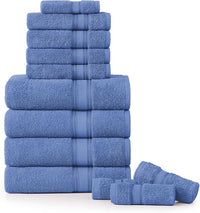 LANE LINEN Luxury Bath Towels Set - 12 Piece Set, 100% Cotton Bathroom Towels, Zero Twist, Quick Dry Shower Towel, Absorbent Bath Towel, 4 Bath Towels, 4 Hand Towels, 4 Wash Cloths - Cerulean Blue