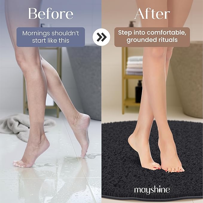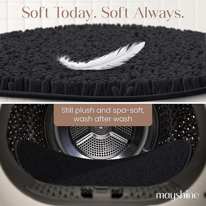 MAYSHINE Round Area Rug Set for Bathroom | Soft Plush Chenille Bath Mat, Water Absorbent Non-Slip Bathroom Rug | Washable Shag Carpet for Shower, Bedroom, or Home Décor | 48"x48" (Round) | Black