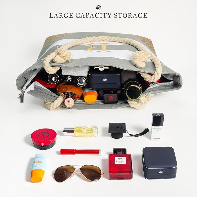 YOOLIFE Initial Canvas Waterproof Beach Tote Bag Zipper Personalized Gifts for Women Her Birthday Travel Beach Essential Sale