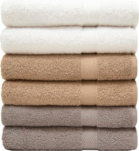 Pleasant Home Bath Towels Set of 6 (24” x 50”) 100% Cotton, 515 GSM | Soft & Absorbent Towels for Bathroom, Gym, Pool & Spa | Bulk Bath Towels 6 Pack - Neutral Mix