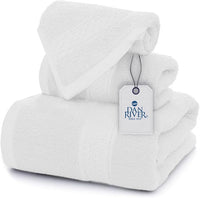 DAN RIVER 100% Ring Spun Cotton 3-Piece Towel Set, White, Bath Towel, Hand Towel and Washcloths, 550 GSM - Soft, Absorbent Quick Dry Cotton Towels for Bathroom, Spa, and Gym