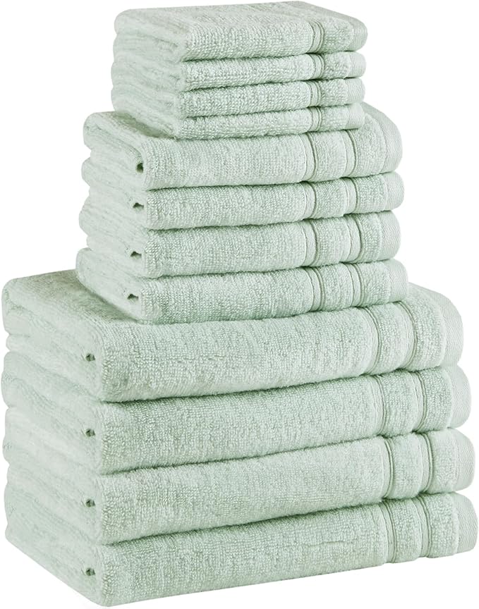 Comfort Spaces Luxury Bath Towel Set of 12 - 4 Large, 4 Hand, 4 Washcloths, 100% Cotton Quick Dry, Zero Twist, Soft Lightweight, Seafoam Green