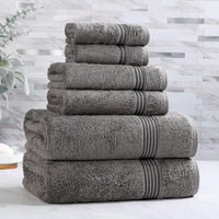 Superior Egyptian Cotton 6-Piece Towel Set, Assorted Towels for Home Bathroom, Master, Guest Bath, Decor Essentials, Includes 2 Bath, 2 Hand, 2 Face Towels/Washcloths, Quick Dry, Absorbent, Charcoal