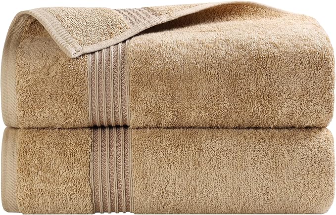 Superior Egyptian Cotton Bath Towel Set, Home Bathroom Towels, Master, Guest Bath, Decor Essentials, Quick Dry, Absorbent, Large Body Towels, Spa, Hotel, Resort, Adult, Kids, Set of 2, Toast
