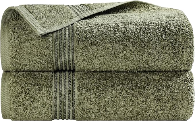 Superior Egyptian Cotton Bath Towel Set, Home Bathroom Towels, Master, Guest Bath, Decor Essentials, Quick Dry, Absorbent, Large Body Towels, Spa, Hotel, Resort, Adult, Kids, Set of 2, Forest Green