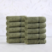 Superior Egyptian Cotton Face Towel/Washcloth Set, Small Towels for Home Bathroom, Master, Guest Bath, Decor Essentials, Quick Dry, Absorbent, Spa, Hotel, Resort, Adult, Kids, Set of 10, Forest Green