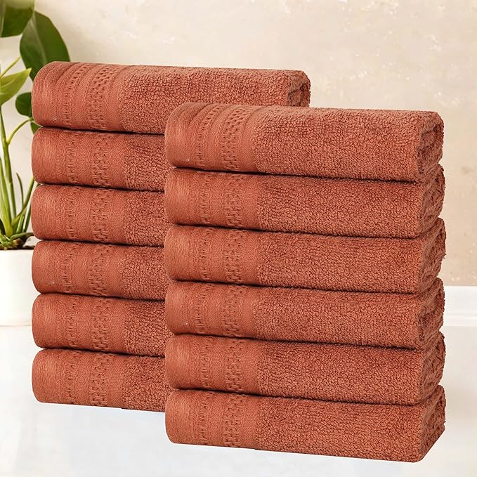 Superior Honeycomb Cotton Medium Weight Towels, for Guest Bath, Master Bathroom, Shower, Quick Dry, Adults, Home Essentials, Textured Waffle Border, Assorted Towel Set, 12 Piece Face Towel Set, Rust