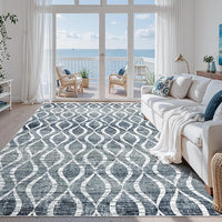 WITSHOCK Boho 8x10 Rugs for Bedroom - Washable Non-Slip Large Thin Indoor Rug for Living Room Dining Room, Soft Modern Geometric Low Pile Print Dark Blue Carpet for Nursery, Kid & Pet Friendly