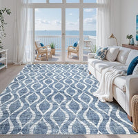 Witshock 8x10 Area Rugs for Bedroom: Washable Non-Slip Large Thin Indoor Rug for Living Room Dining Room, Soft Geometric Low Pile Boho Print Carpet for Nursery Playroom Decor, Kid & Pet Friendly, Blue