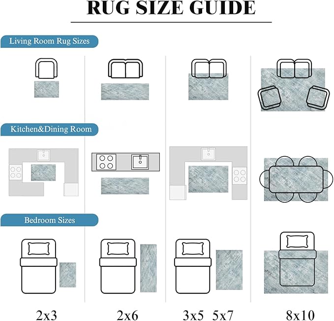 Washable Rug 8x10 Area Rugs for Living Room - Stain Resistant Non-Slip Backing Boho Rug for Bedroom,Durable & Ultra-Thin Vintage Large Area Rug(8x10,Blue)